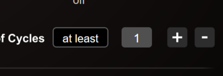 Specify the number of LFO cycles that should follow each trigger. There are also three cycle modes ("at least," "at most," and "exactly") that apply different rules to the number. The relevant control parameters are shown in the image below.