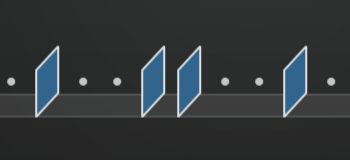 TapSkip uses blue squares on a track to visualize the taps. The skips are depicted as white dots.